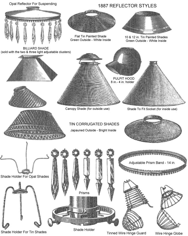 There is a 10 inch flat opal reflector shown above in the 1887 E.P.